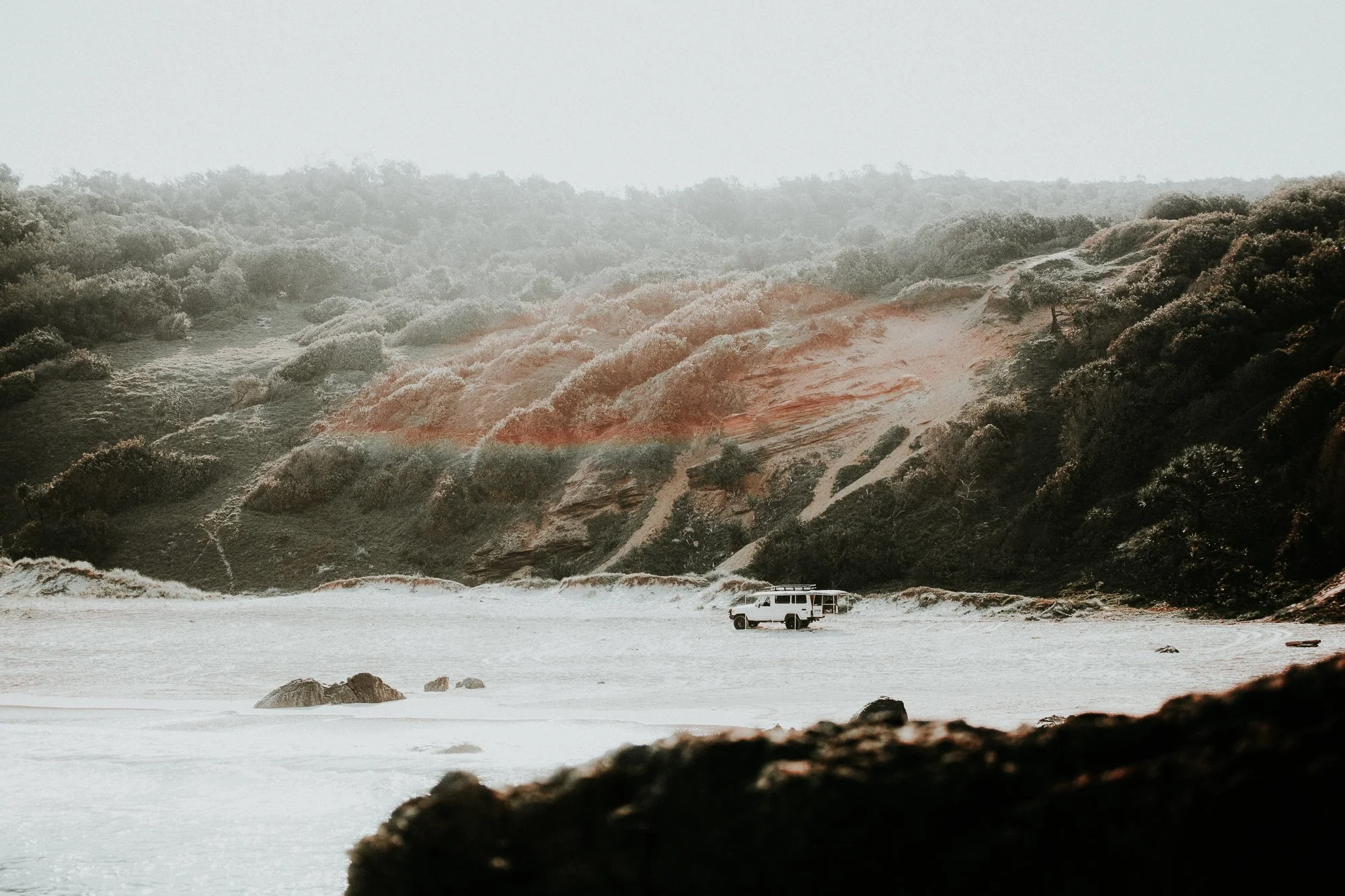 After a long day of surfing, a few of the crew decided they would have one last surf before the tide got too high to drive back. I was cooked so decided to climb up the headland with my camera. With the looming fear of not being able to get home because of the high tide, the caravan of surfers took off, and our crew were the last ones left.